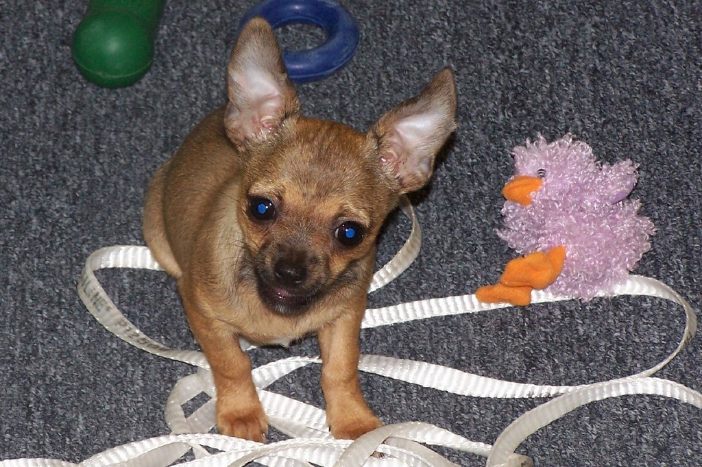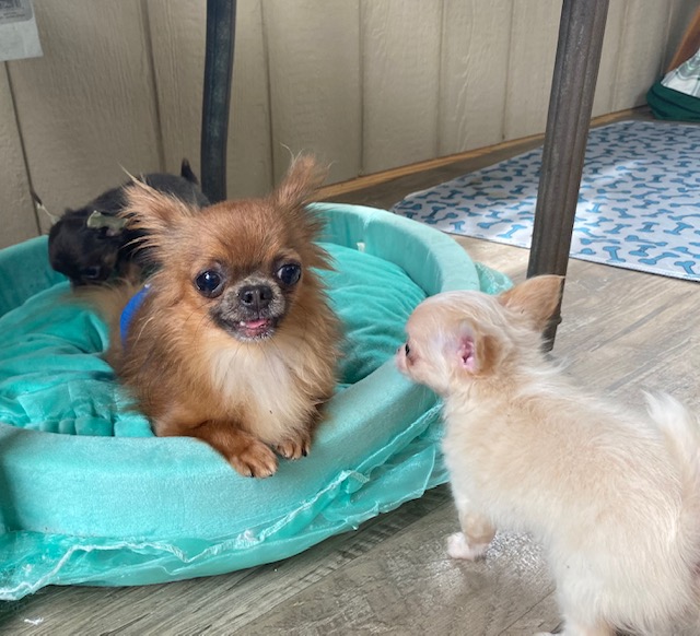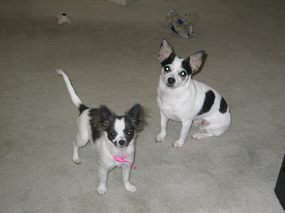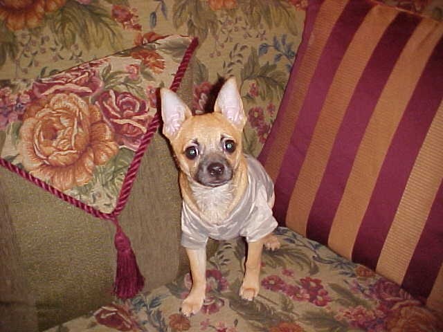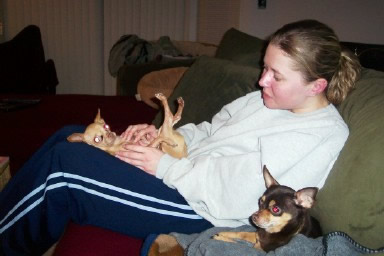 Carmen (Scrumptious/Bubbles}enjoying her new life with her new brother. Some people think chihuahuas and children don't mix very well. I agree that is true if the parents of the children are not responsible. Notice how this adorable little girl is sitting on the floor and not the couch. Some parents actually raise very loving, gentle and managable children. I believe that Carmen is living a better life because of her new family being the family it is. To have denied this family a chihuahua would be a mistake on my part. I would rather feel the parents out and decide if they can safely handle a chihuahua in their home. I do refuse to sell to MANY families with children, but not ones like this.