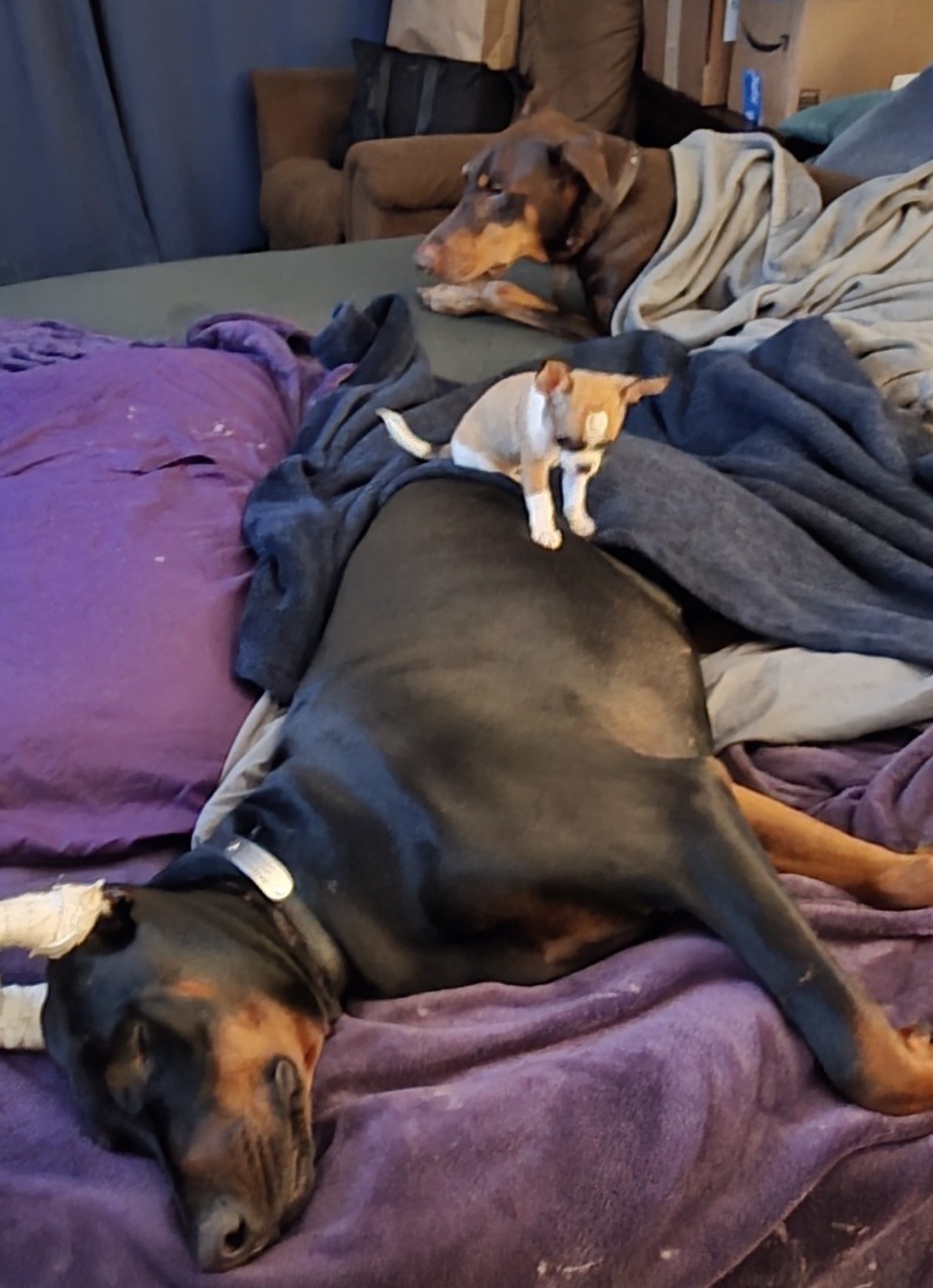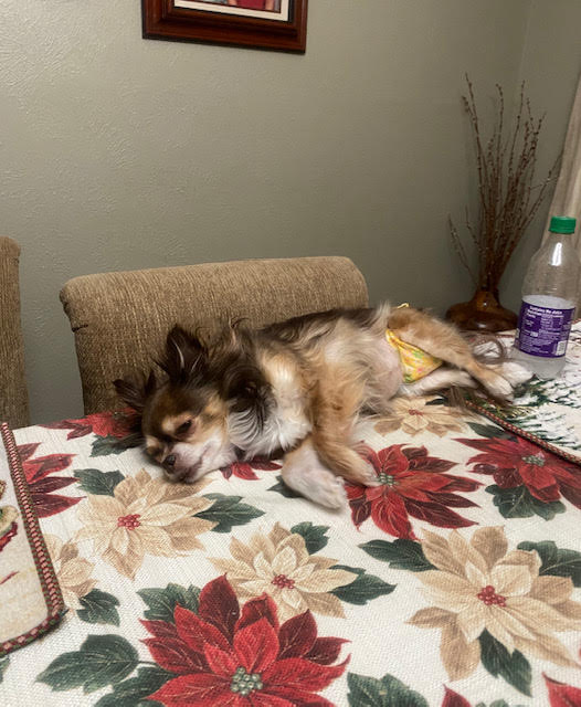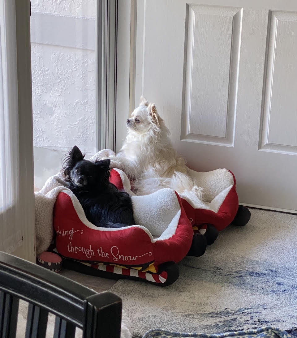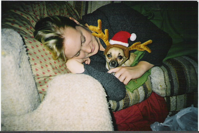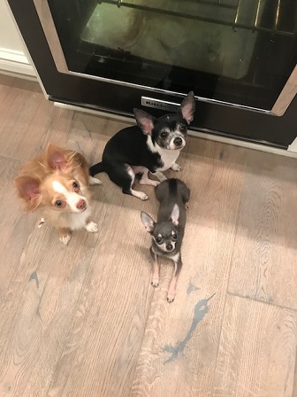 If you look hard, you will see Snicker's son between his two dachshund friends, Mitzie and Oscar.