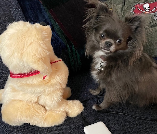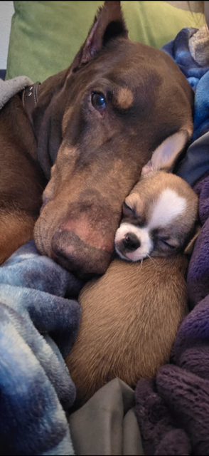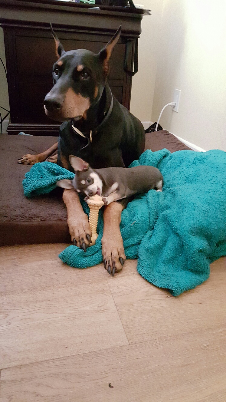 One of my puppies from Sadie and Snickers. Look at how cute Romeo was at his new home with his new friend.