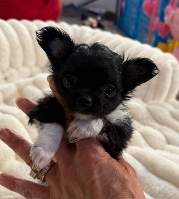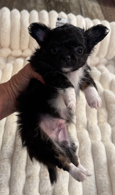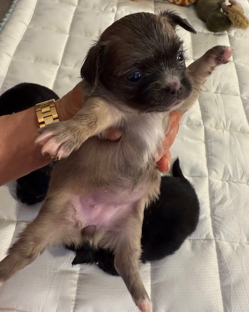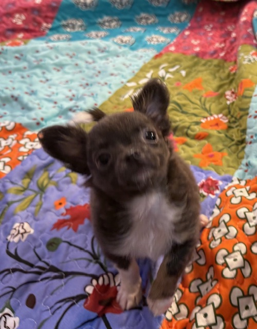 Welcome to our available puppy page. You came to the right place if you are looking for a healthy, beautiful and very social chihuahua puppy. At Ueys, we realized long ago that chihuahuas can ALL be very friendly and love every stranger they meet if raised properly. We also aggressivly work on potty training. The breeder has to be dedicated and willing to stay home most of the time. Breeders that work 40 hours a week at an outside job and hang out at dog shows all weekend are not doing justice to their puppies at home or their adults that need CONSTANT attention. With almost 3.5 decades of meticulously breeding out unhealthy traits and consistenly upgrading standards, we do not need to spend all of our precious spare time attending dog shows to prove anything. When you visit here, you will meet VERY social puppies. We are proud of our breeding program; that we have been improving upon since 1992. Scroll down to see our available puppies raised with a passion. Our puppies are given the best start possible and our dedication shows. Our dogs have excellent health insurance with Fetch and are genetically tested. Feel free to ask to see proof and I will proudly reply. When you purchase a puppy from Uey's, you will also have access to a very dedicated breeder that answers her phone for her saved contacts right away and provides her home phone for after hours if needed.